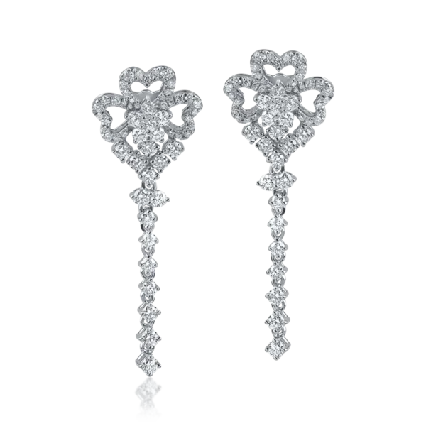 Cercei din aur alb cu diamante pear si rotunde de 1.82ct