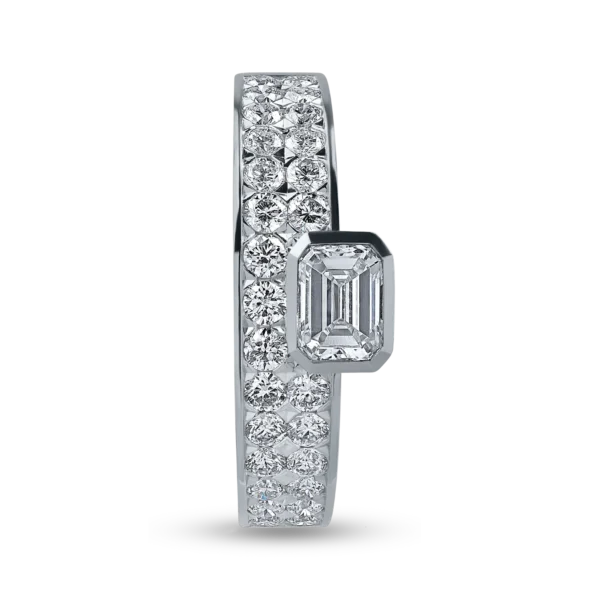 Inel din aur alb cu diamante emerald si rotunde de 1.09ct