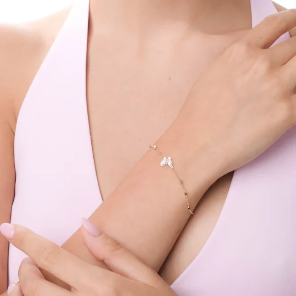 Bratara din aur galben cu bilute si pandantiv fluture