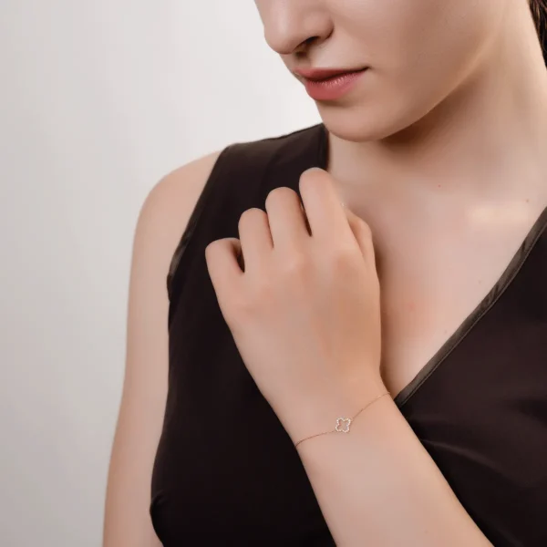 Bratara din aur roz cu diamant negru rose de 0.2ct si diamante transparente de 0.15ct