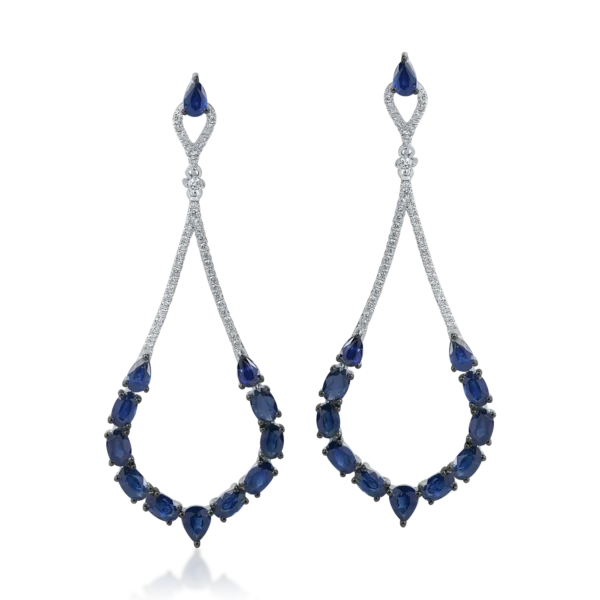 Cercei candelabru din aur alb cu safire pear si ovale de 7ct si diamante de 0.5ct