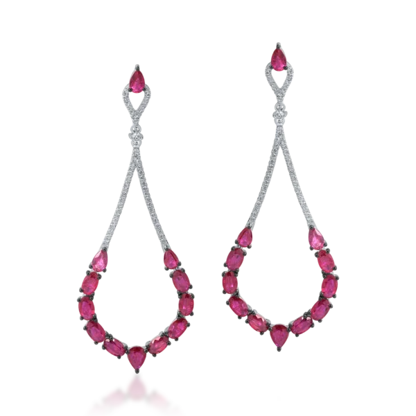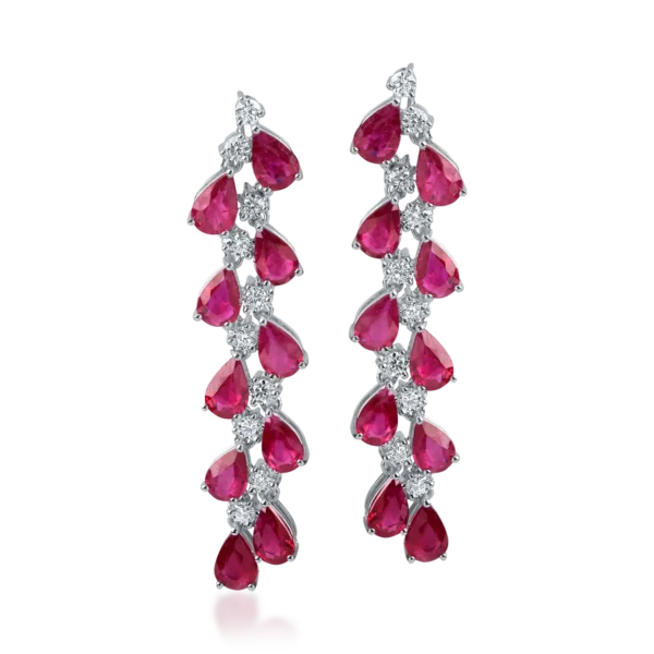 Cercei candelabru din aur alb cu rubine pear si ovale de 6ct si diamante de 0.5ct