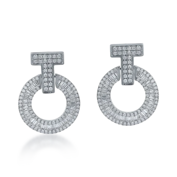Cercei cerc din aur alb cu diamante baguette si rotunde de 1.2ct