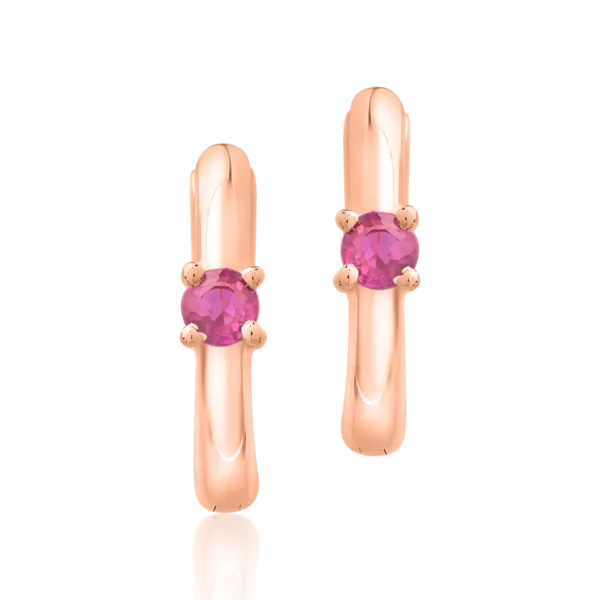 Cercei pentru copii din aur roz cu rubine de 0.138ct