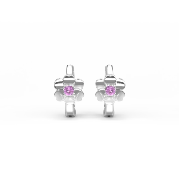 Cercei pentru copii floricele din aur alb cu safire roz de 0.072ct