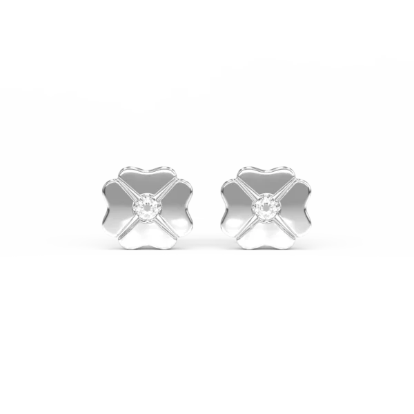 Cercei pentru copii trifoi din aur alb cu diamante de 0.04ct