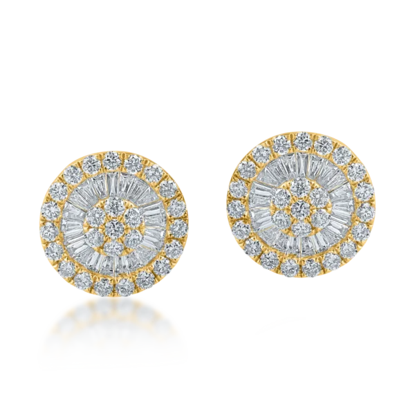 Cercei rotunzi din aur galben cu diamante baguette si rotunde de 1.2ct