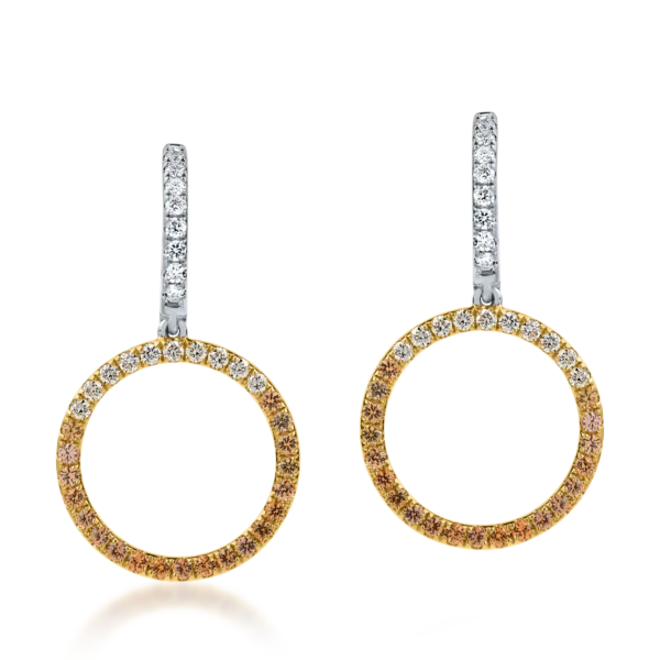 Cercei rotunzi din aur galben cu diamante multicolore de 0.75ct
