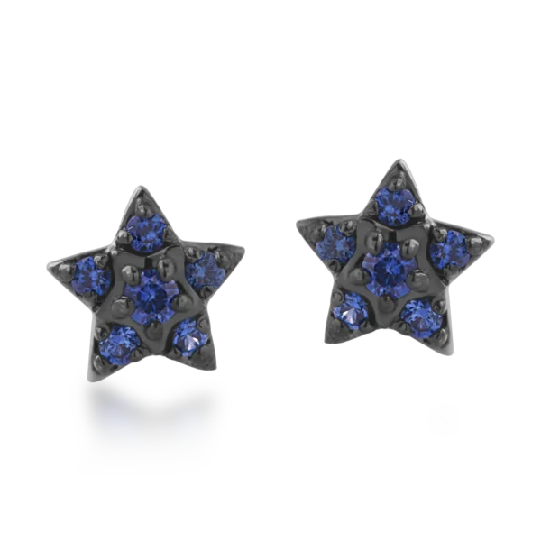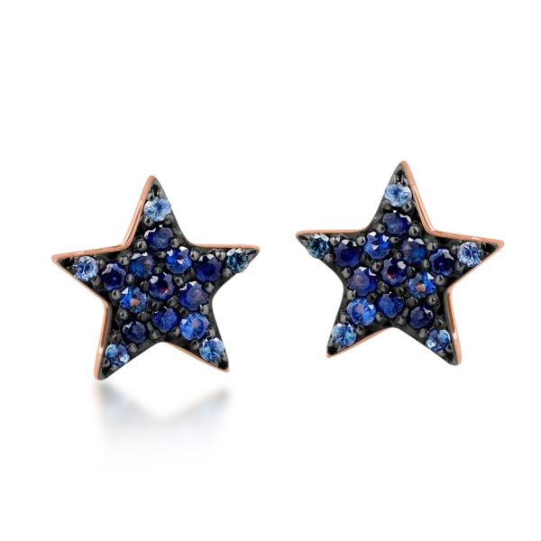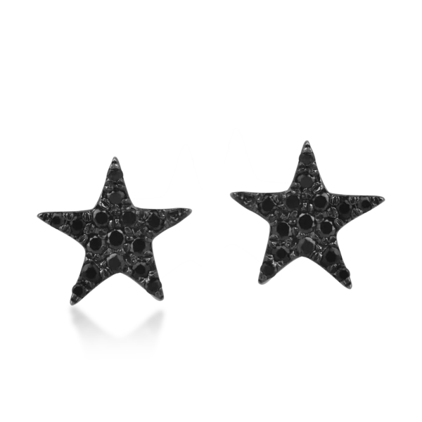Cercei stea din aur roz cu diamante negre de 0.16ct