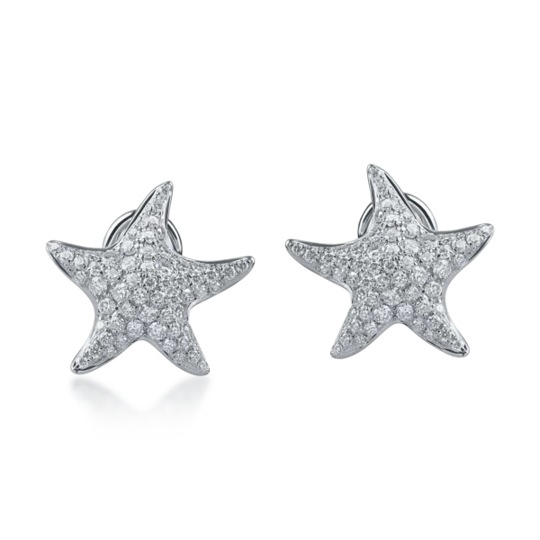 Cercei stele de mare din aur alb cu diamante de 1.18ct