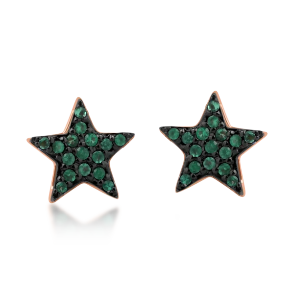 Cercei stea din aur roz cu smaralde de 0.17ct