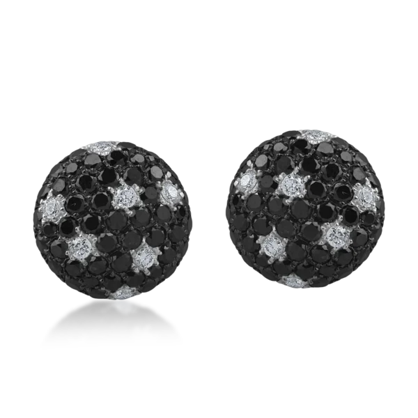 Cercei stud din aur alb cu diamante negre si incolore de 0.6ct
