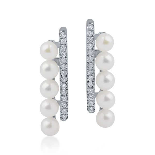 Cercei stud din aur alb cu perle de cultura de 2.01ct si diamante de 0.11ct