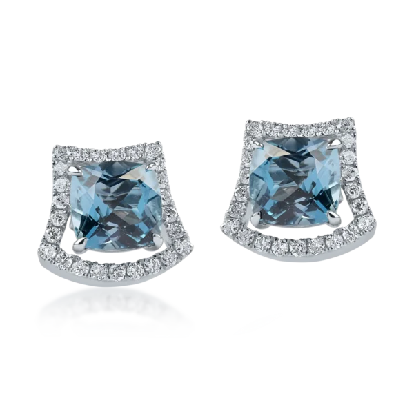Cercei stud din aur alb cu topaze london blue square de 3.816ct si diamante de 0.407ct