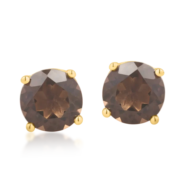 Cercei stud din aur galben cu quartz fumuriu de 1.5ct