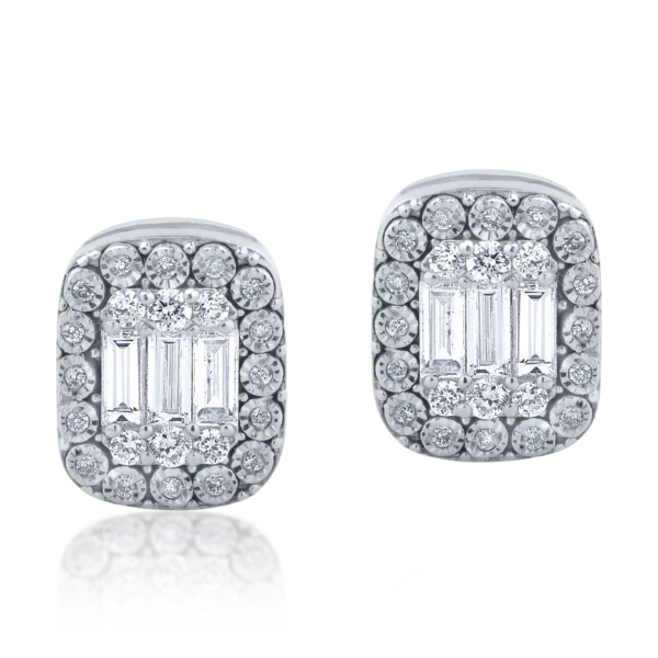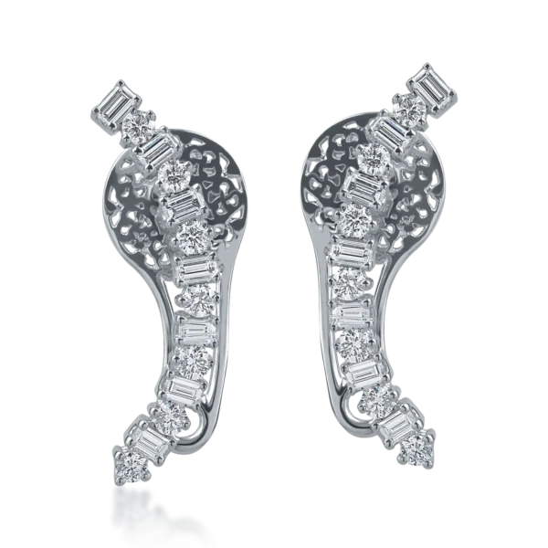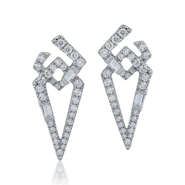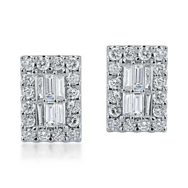 Cercei din aur alb cu diamante baguette si rotunde de 0.58ct