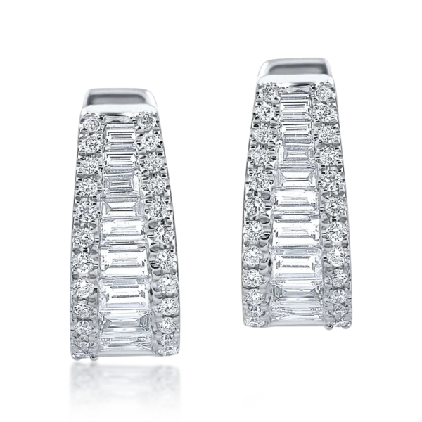 Cercei din aur alb cu diamante baguette si rotunde de 0.8ct