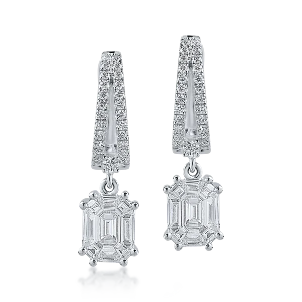 Cercei din aur alb cu diamante baguette si rotunde de 0.97ct