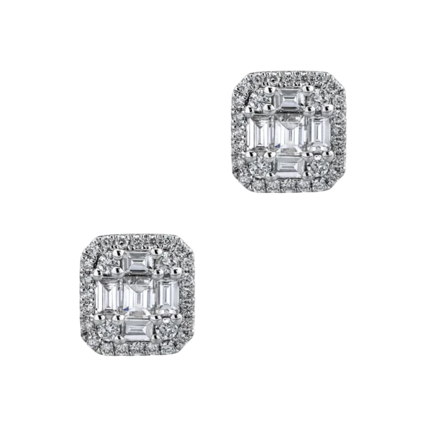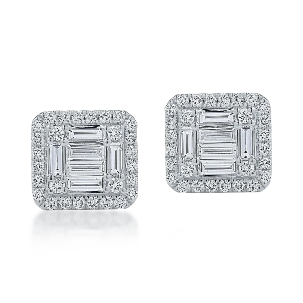 Cercei din aur alb cu diamante baguette si rotunde de 1.09ct