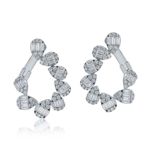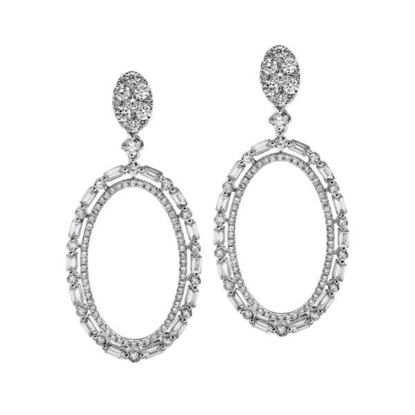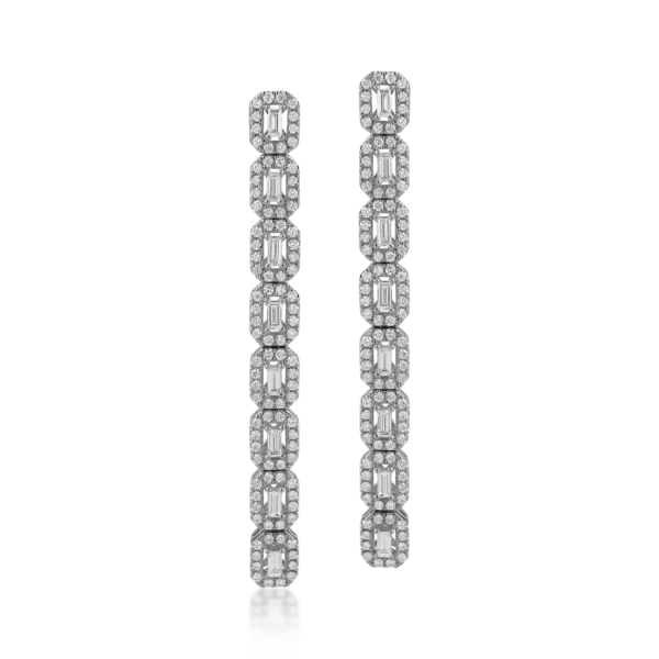 Cercei din aur alb cu diamante baguette si rotunde de 1.98ct