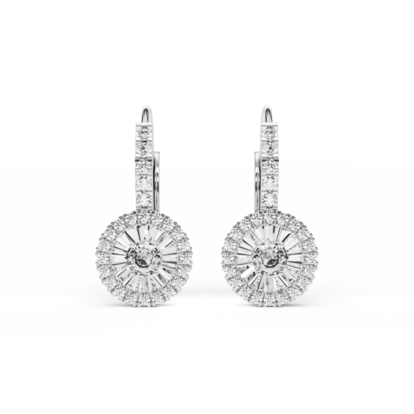 Cercei din aur alb cu diamante baguette si rotunde de 0.5ct