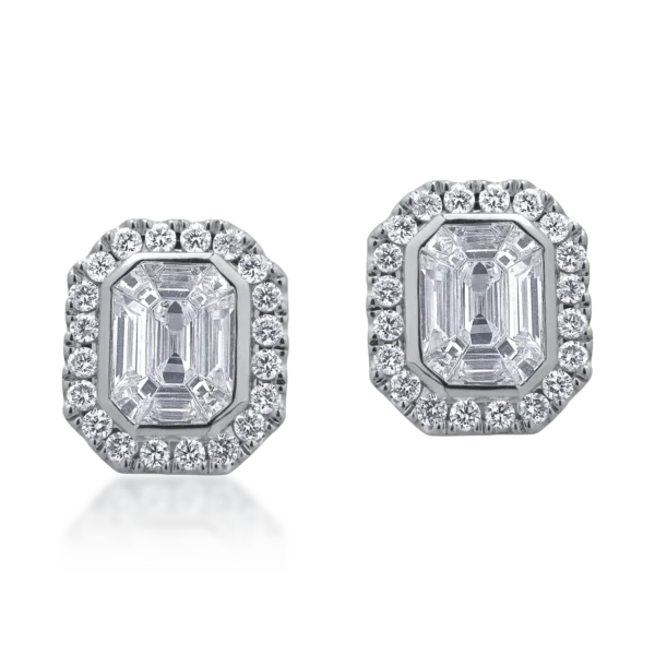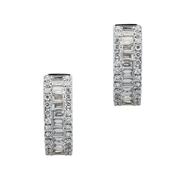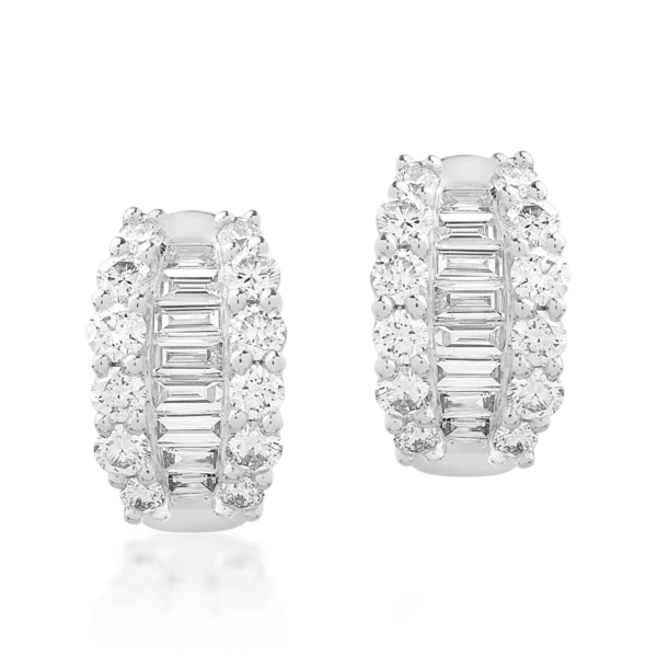 Cercei din aur alb cu diamante baguette si rotunde de 1.57ct