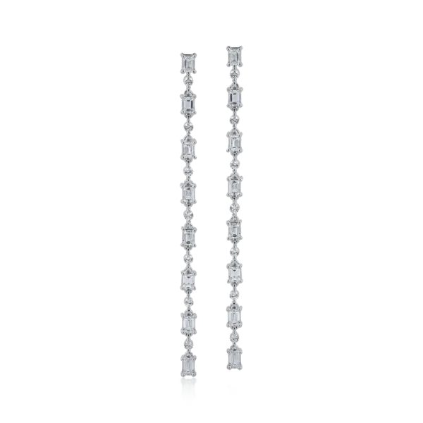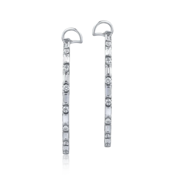 Cercei din aur alb cu diamante baguette si round de 3.59ct