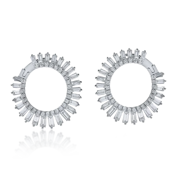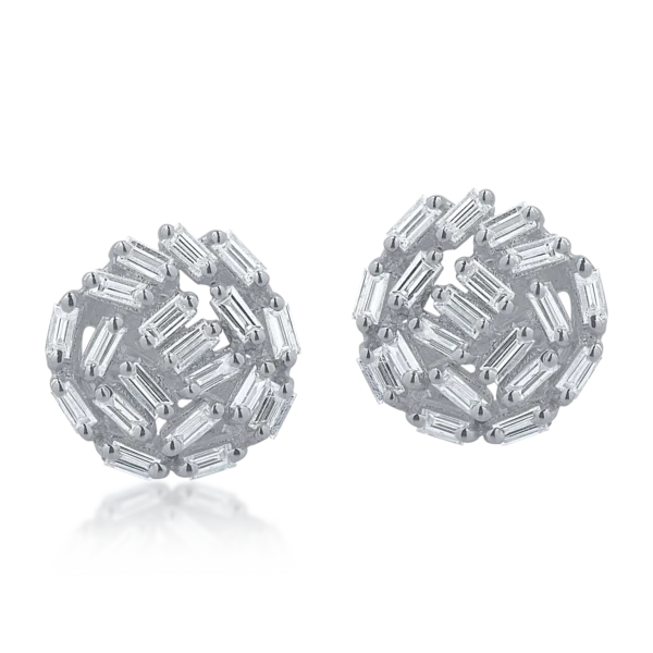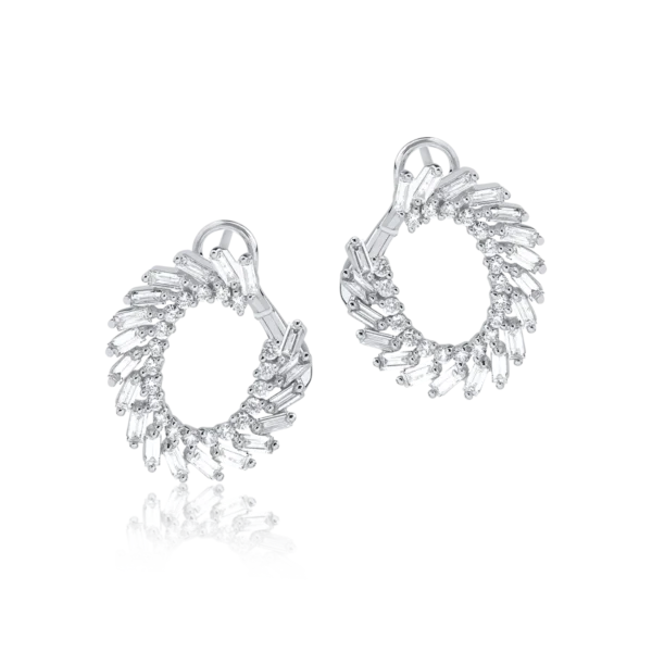 Cercei din aur alb cu diamante baguette si rotunde microsetting de 1.2ct