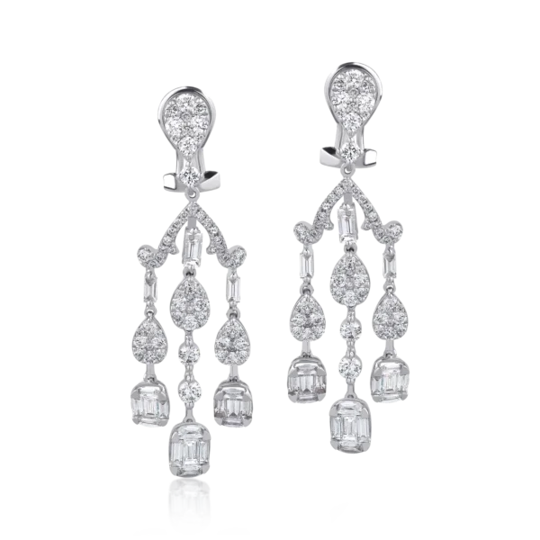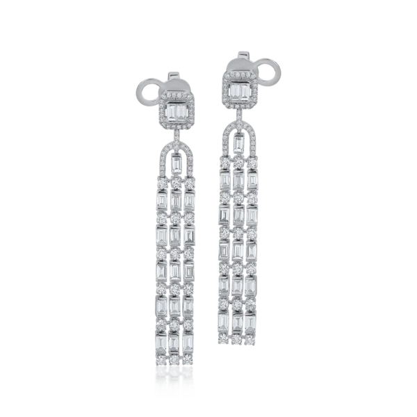 Cercei din aur alb cu diamante baguette si rotunde microsetting de 2.1ct
