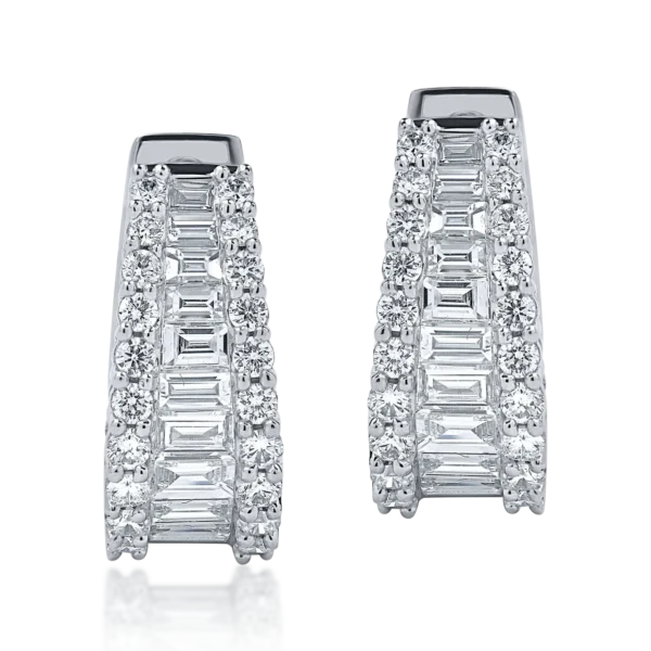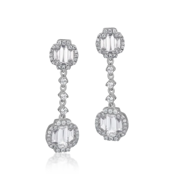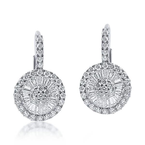 Cercei din aur alb cu diamante baguette si round de 1.36ct