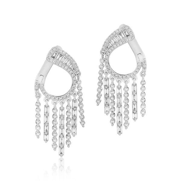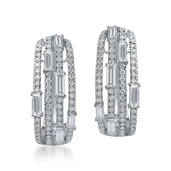 Cercei din aur alb cu diamante baguette si rotunde microsetting de 1.7ct