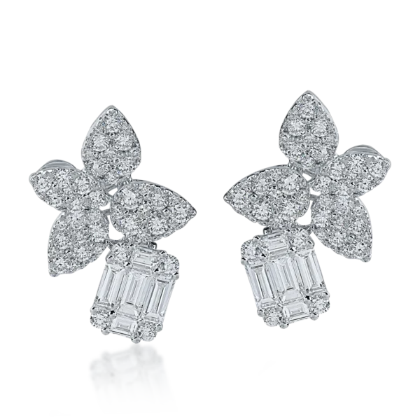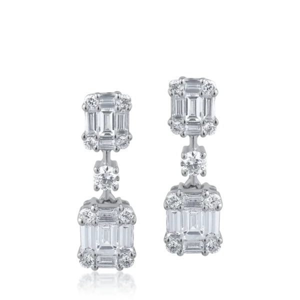 Cercei din aur alb cu diamante baguette si round de 1.84ct