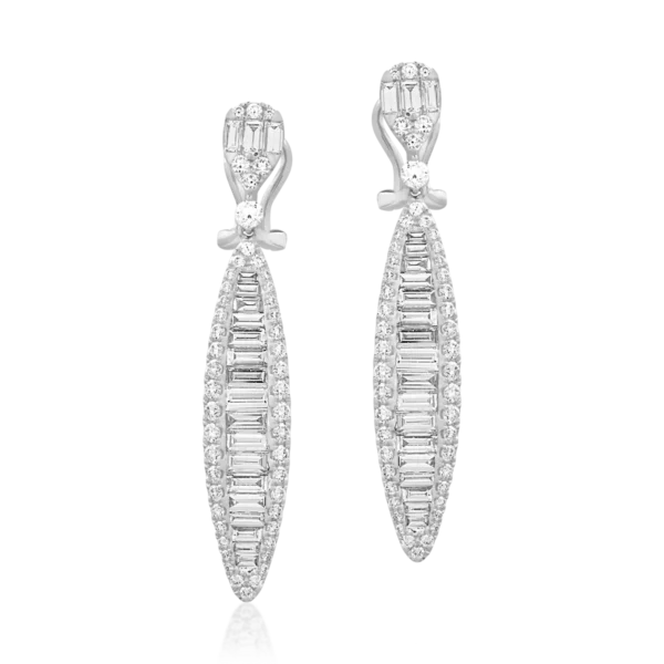 Cercei din aur alb cu diamante baguette si rotunde microsetting de 1.5ct