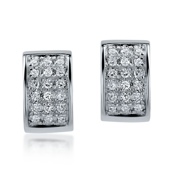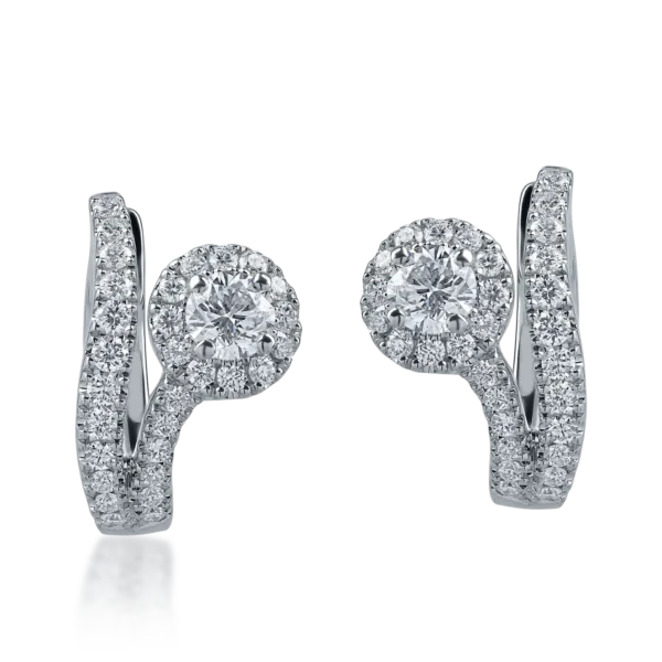 Cercei din aur alb cu diamante cushion si rotunde de 1.02ct