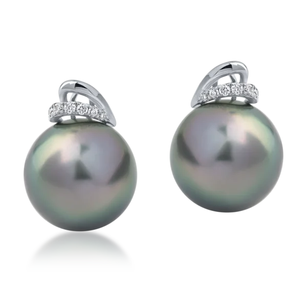 Cercei din aur alb cu diamante de 0.093ct si perle de cultura