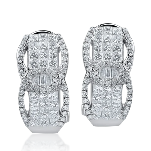 Cercei din aur alb cu diamante baguette, princess si rotunde de 1.41ct