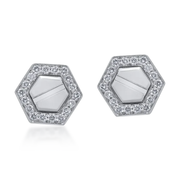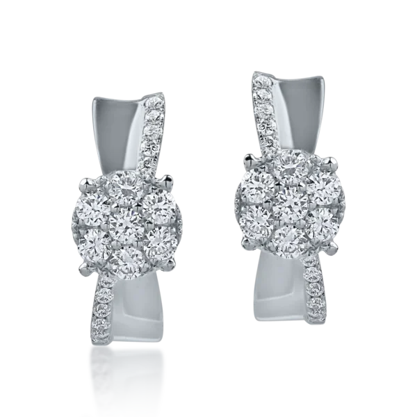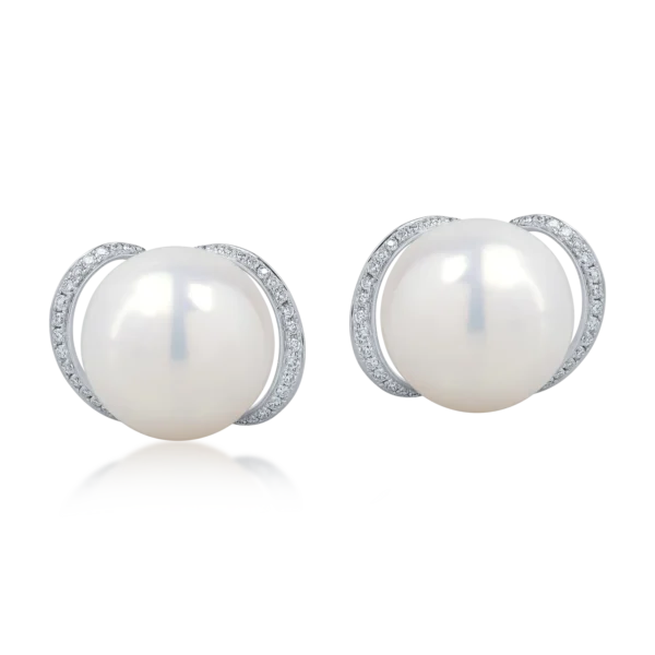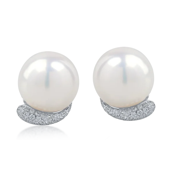 Cercei din aur alb cu diamante de 0.3ct si perle de cultura