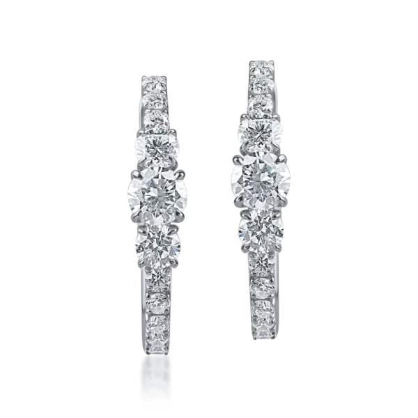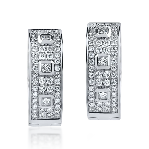 Cercei creole din aur alb cu diamante princess si rotunde de 1ct