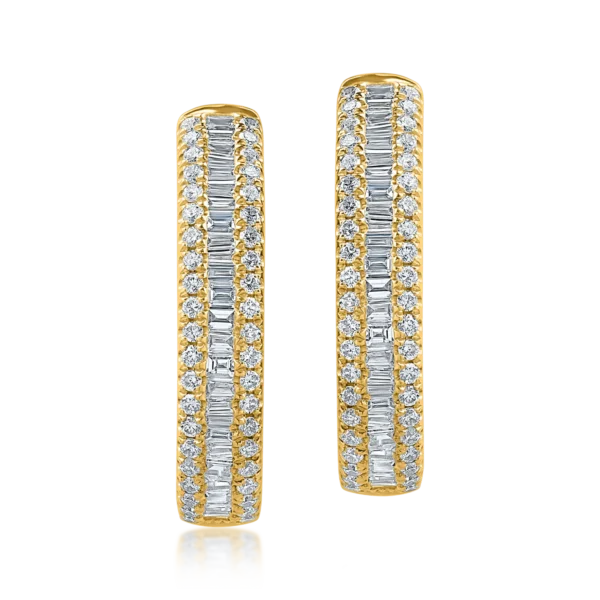 Cercei creole din aur galben cu diamante baguette si rotunde de 0.6ct