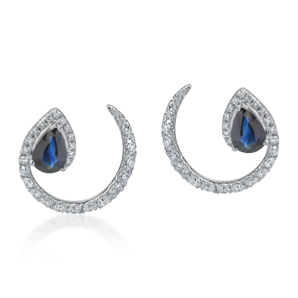 Cercei din aur alb cu diamante de 0.7ct si safire pear de 1.6ct