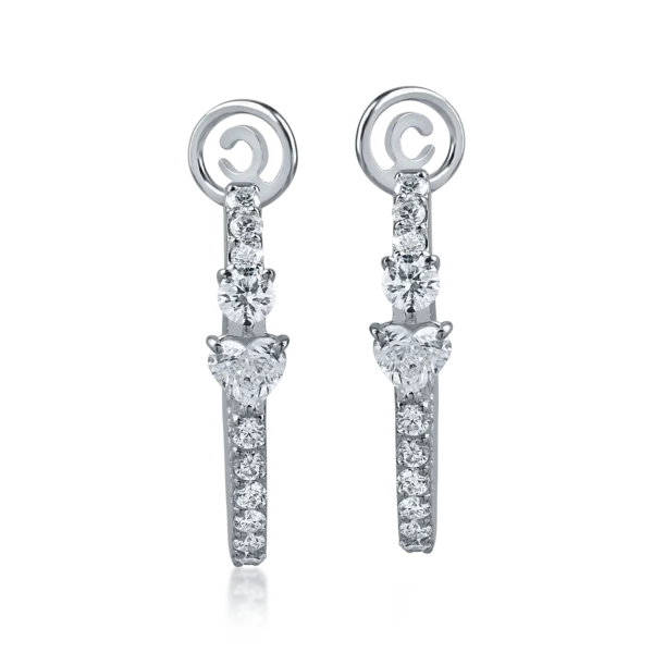 Cercei din aur alb cu diamante heart si rotunde de 1.4ct