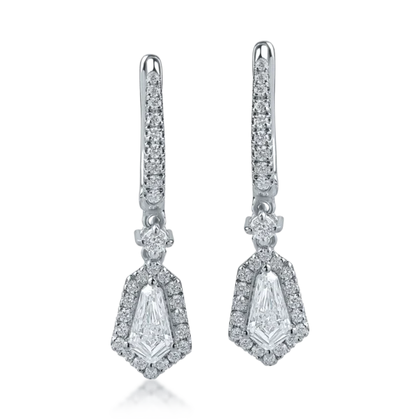 Cercei din aur alb cu diamante kite si round de 1.26ct