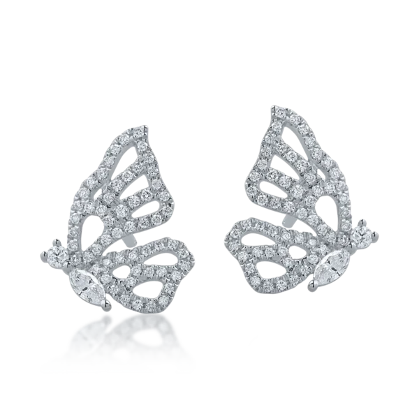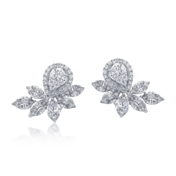 Cercei din aur alb cu diamante marquise si rotunde de 0.63ct