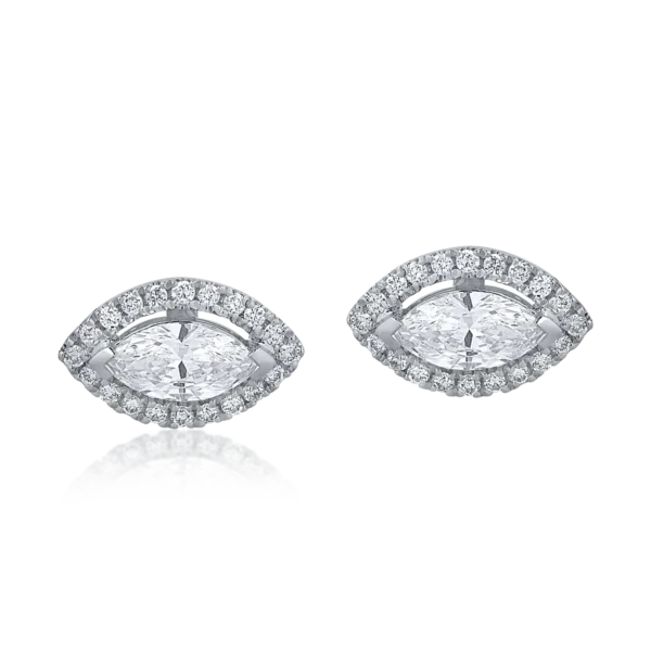 Cercei din aur alb cu diamante marquise si rotunde de 0.68ct