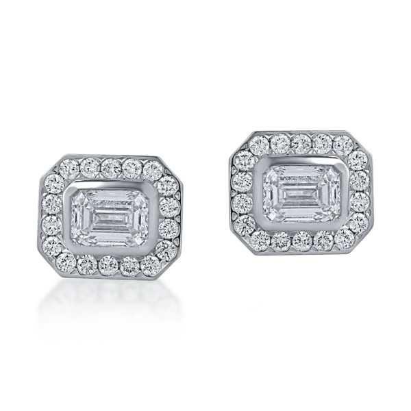 Cercei din aur alb cu diamante emerald de 1.2ct
