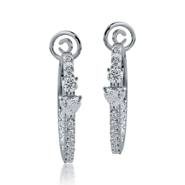 Cercei din aur alb cu diamante heart si rotunde de 1.39ct