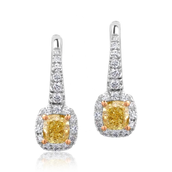 Cercei din aur alb cu diamante fancy-galben de 0.568ct si diamante de 0.426ct