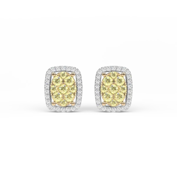 Cercei din aur alb cu diamante fancy-galbene radiant de 1.19ct si diamante incolore round de 0.52ct