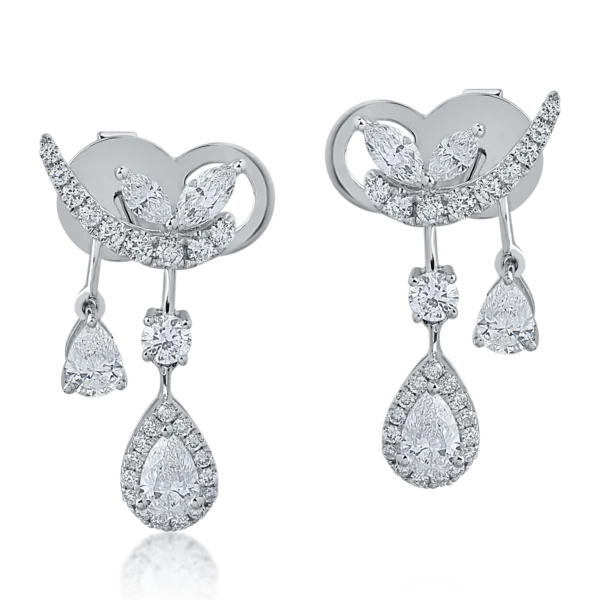 Cercei din aur alb cu diamante marquise, pear si rotunde de 1.68ct