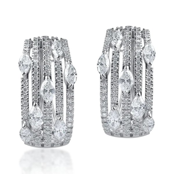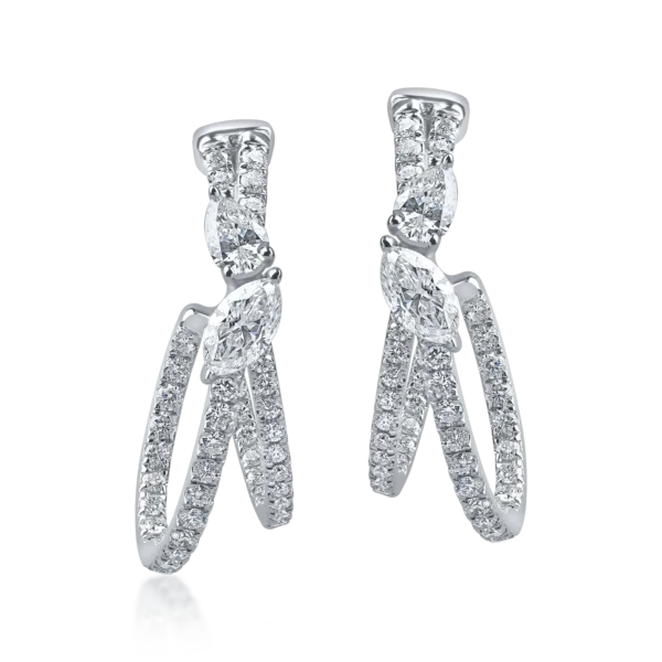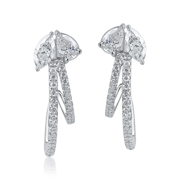 Cercei din aur alb cu diamante marquise si round microsetting de 2ct